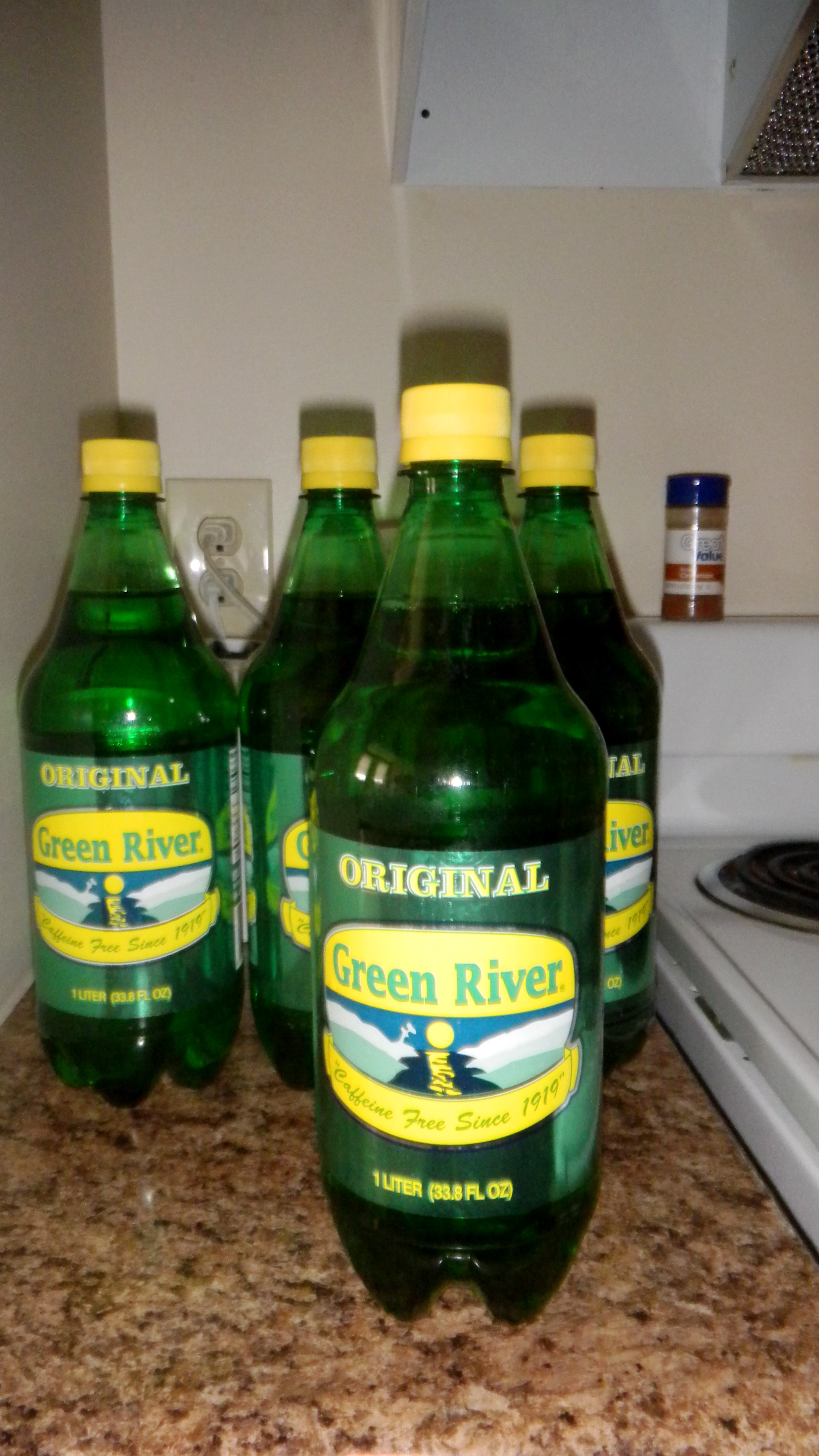 Green River. A bright green, lime-flavored soft drink that originated in Chicago in 1919. It’s kind of a mix between Mountain Dew, Mello Yello and yummy lime flavors. Back in the ’60s this fountain drink was available in some drugstore fountains. Total throwback.