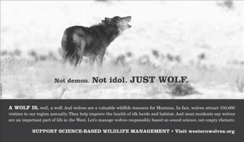 Have you seen this new ad from the Defenders of Wildlife and the Western Wolves Coalition? I kind of love it. Unfortunately, wolf recovery in Montana is in jeopardy, but you can help! Consider donating to the Campaign to Save America’s Wolves. The WWC is a source of networking for wildlife organizations across the northern Rockies and Pacific Northwest.