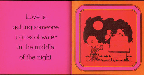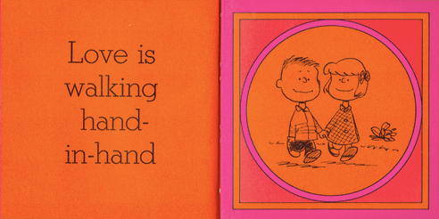 A coworker recently sent me a story about the classic Peanuts books, “Love is” and “Happiness is.” These are some of my favorite books and I own almost all of them. But the best part about this story? When the author found his used copy of “Love is Walking Hand in Hand” from 1965, there was an inscription written inside from the original owner. It said: