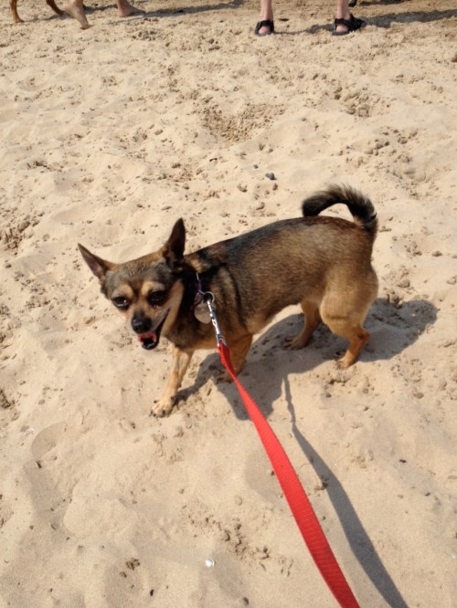 With the scorching heat consuming the city over the weekend, it was the perfect opportunity to check out the Montrose Dog Beach with Chicklet. I first went there last summer with Frasier and Josh when my uncle was in town, and Frasier loved it. While Chicklet was even more weary of the water than Frasier, she did enjoy lounging in the sand before pooping out rather quickly. It’s tough being a small pup. Upon our return, everyone on our block was enjoying their own fun: with a busted fire hydrant. I had never seen one before and we couldn’t stay away, despite the wastefulness. Sigh.