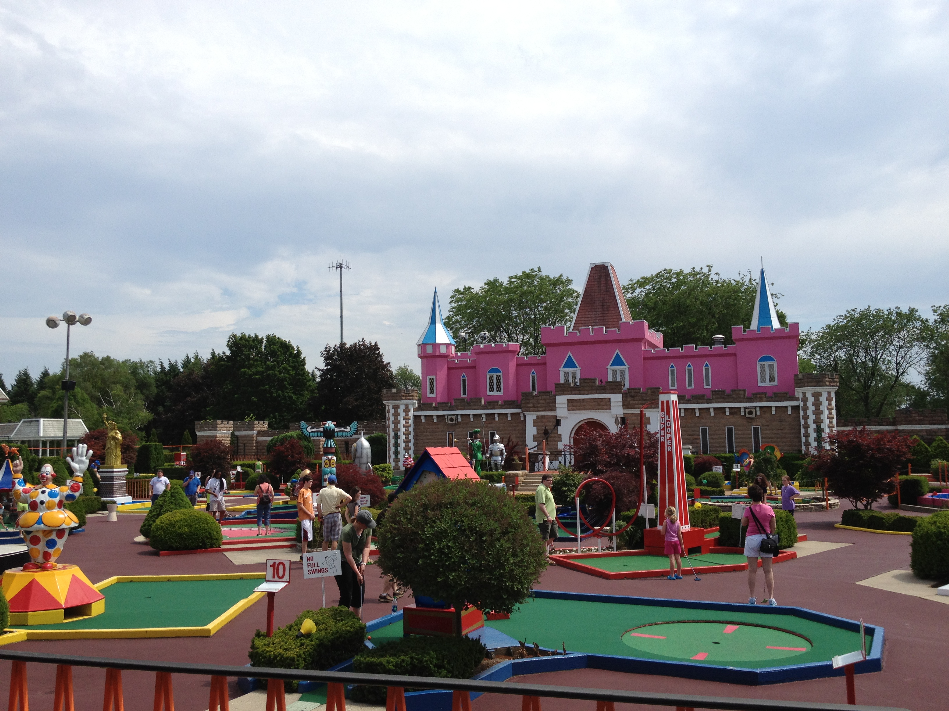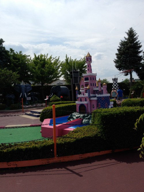 While I’ve never actually golfed (and have no desire to do so), mini golf is the perfect summertime activity. Josh got it in his head that he had to try Par-King in Lincolnshire this past Monday, and while it was no where near as good as Lost Mountain on 75th Street in Woodridge, it was still fun. We even joked that the small pink castle below was perfect for Chicklet:)
