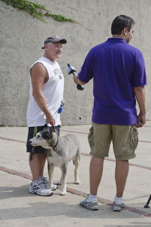 A few weeks ago Chicklet and Frasier participated in a Happy Trails walk through Little Italy with One Tail at a Time. Even though it was a scorcher that day and neither pup could make it through the entire walk, it was fun nonetheless. And the best part? They may be featured on 190 North on July 15. Here are a few photos, courtesy of Bernadette from Pet Impressions:)