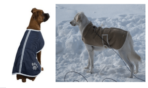 I bought the Nor’easter, and my short haired pit/hound mix loves it. It has reflective trim for night time and is easy to wash. For going out in hunting season, comes in hunter orange. Reversible, with one side water resistant nylon, the other side plaid flannel. Insulated. Easy to put on. I like the look of the shearling coat but that would be a luxury item for looks and not practical. Looks too much like a chew toy…