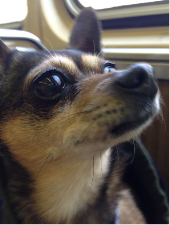 It started when she needed to go to the vet for a teeth cleaning. Since she would be going under for the procedure, she needed to spend the day at the vet’s office. Instead of dealing with rush hour traffic and driving Chick to her appointment, and then having to backtrack to return my car and hop on the train, I just took Chick along with me. We rode a few stops toward the Loop, I dropped her off, and then returned for her on my way home from work. The blue line can get crazy packed in the mornings, but Chick held her own and worked the train like a champ.